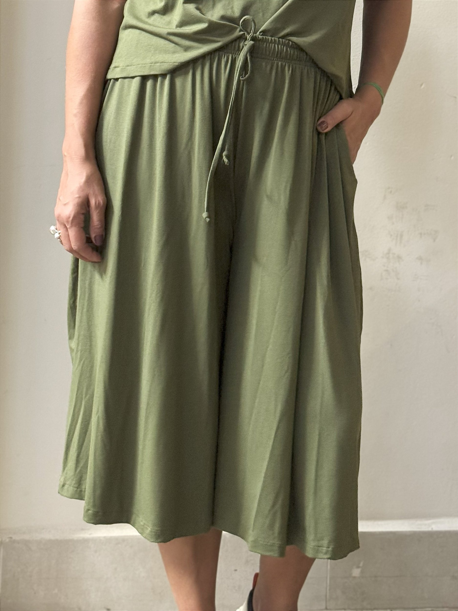 Cós com elástico e cadarço, Pernas amplas e muita bossa.