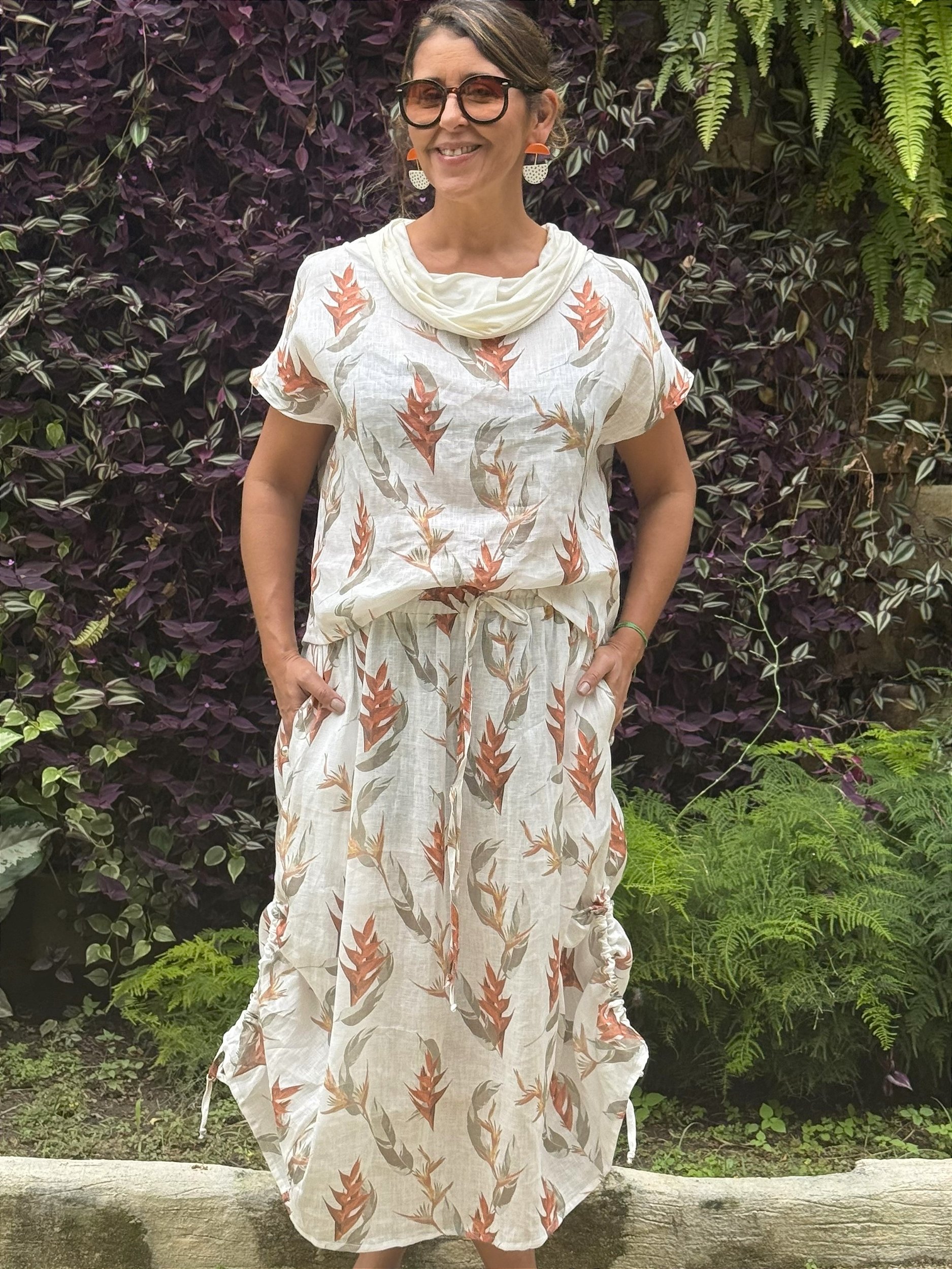 Saia e blusa em linho puro