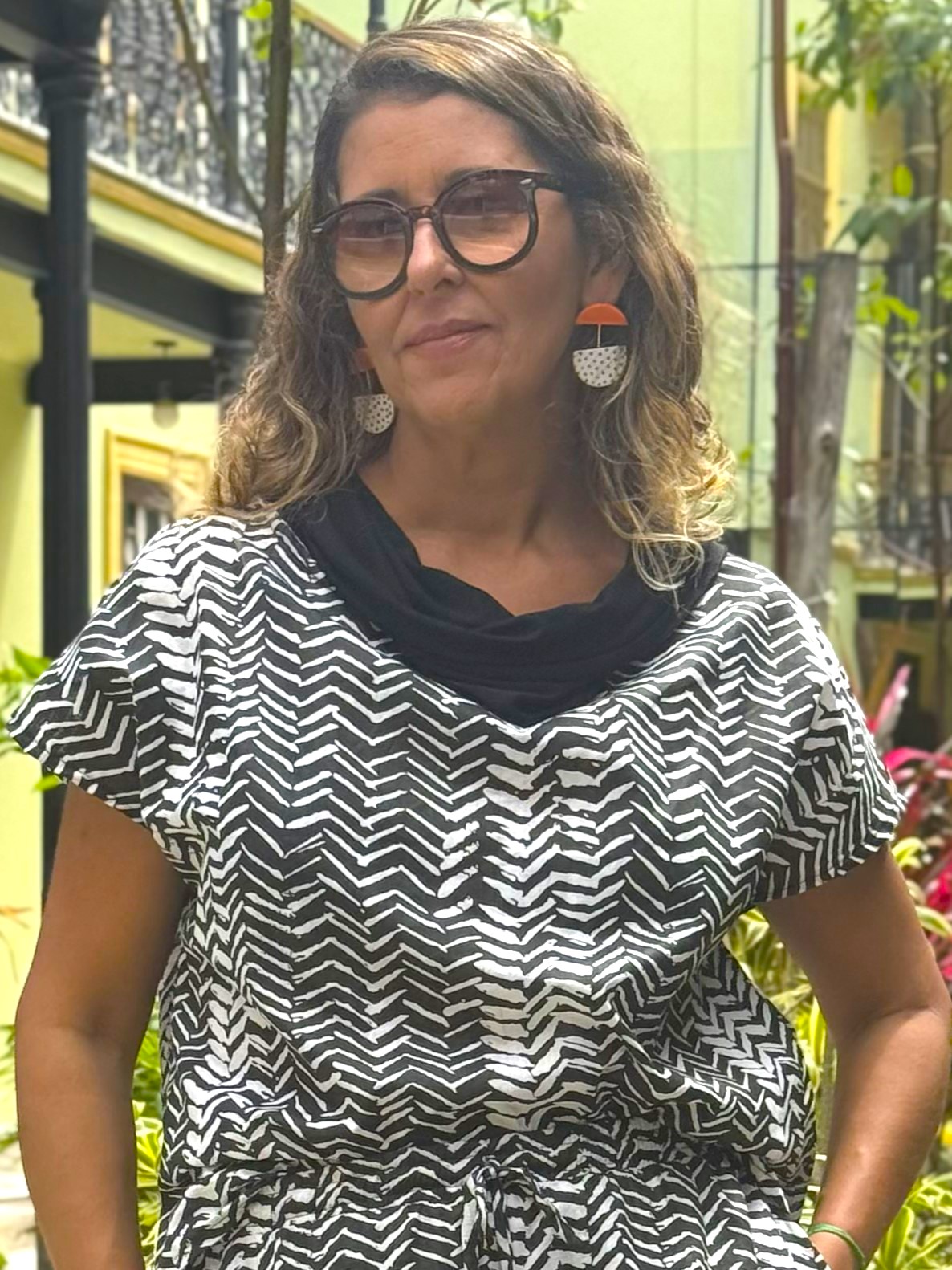 Aqui fazendo par com a saia Semente na mesma estampa.